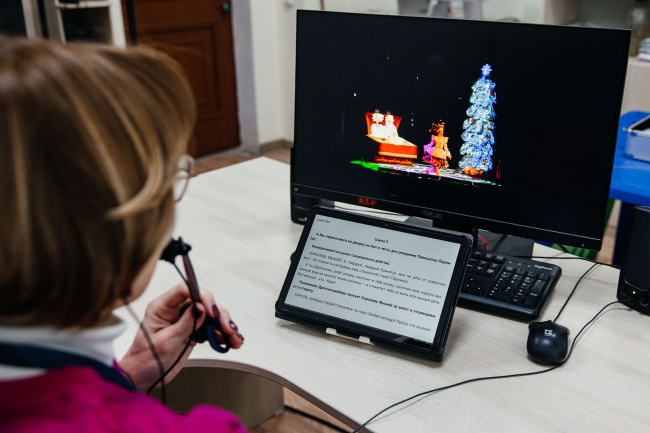 Перед началом действия юные зрители получили наушники, через которые тифлокомментатор Наиля Ибрагимова в реальном времени озвучивала декорации, костюмы и действия героев, становясь проводником в мир сказки.
